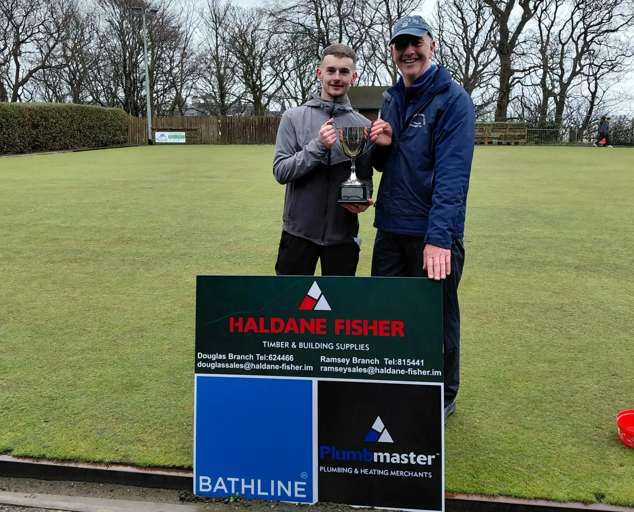 L to R: Winner of the Haldane Fisher Mixed Singles, Glenn Boland with competition secretary, Andy Cannell